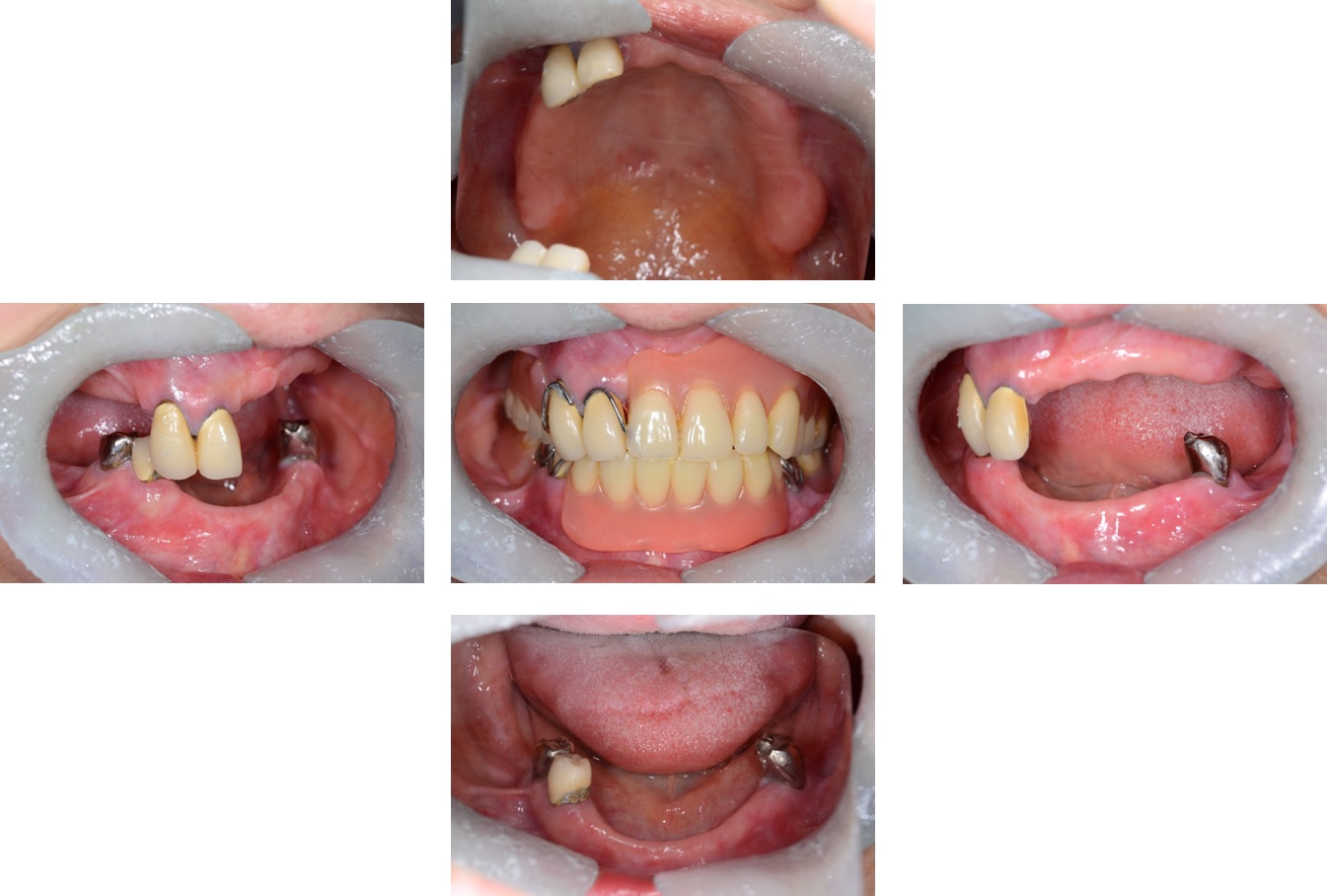 前歯にクラスプを設置しないため、上下とも総入れ歯(上顎の歯は残す)を装着を装着しました。