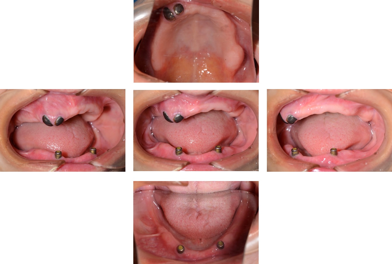 上顎は問題がなかったが、下顎については外れそうになることがあるとのことから、下顎のみインプラントを併用することとなりました。
