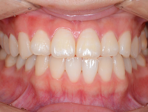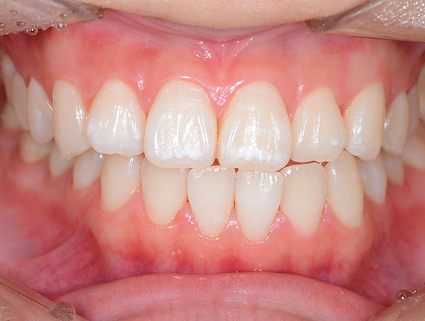 | 治療方針 | 定期検診の際に、オフィスホワイトニングを勧めたところ、以前から興味があったとのことで行うことになりました。 初めてのホワイトニングだったので、3回塗布を行いました。 3回塗布後、患者様が満足いく結果になったので、また歯の色味が気になったころにオフィスホワイトニングをすることになりました。 |